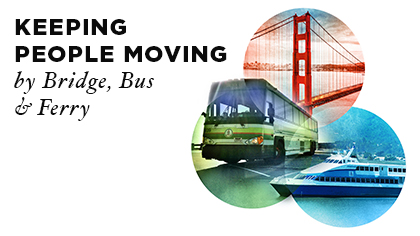 While over 30 million vehicles cross the bridge each year, many people don’t realize it is part of a larger, integrated transportation system stretching from San Francisco to Santa Rosa, which includes both buses and ferries.